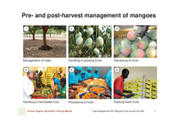 Pre- and post-harvest management of mangoes 2 1 Management of trees 4 3 Handling of growing fruits 5 Handling of harvested fruits 6 Processing of fruits African Organic Agriculture Training…