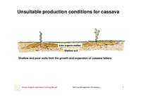 Unsuitable production conditions for cassava Low organic matter Shallow soil Shallow and poor soils limit the growth and expansion of cassava tubers. African Organic Agriculture Training Manual …